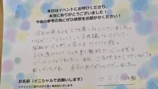お客様の声 風船が次々形を変える ワクワク感。 今日が来るのをとても楽しみにしていました。「なぜ?」「どうして?」と不思議なマジック、風船が次々形を変える ワクワク感。子ども達にことってとても刺激的で心にすぎるベントになりました。また ご当地ネタ(コナンなど)も楽しかったです。本当にあり... 2025.10.08 お客様の声