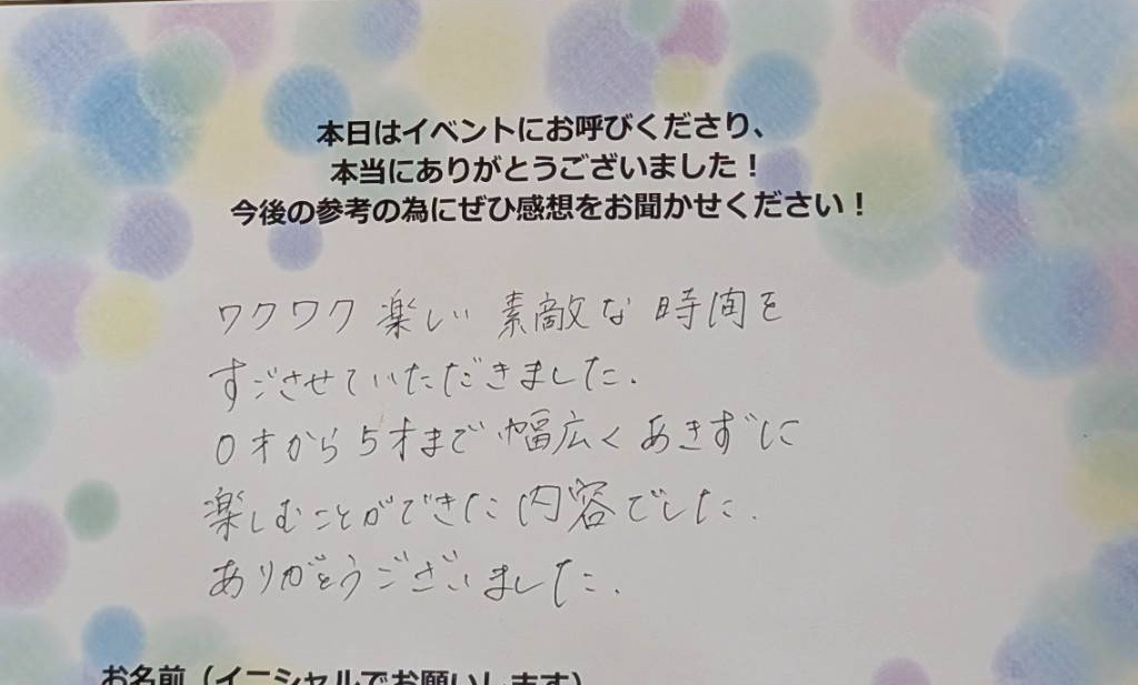 0才から5才まで幅広くあきずに楽しむことができた内容